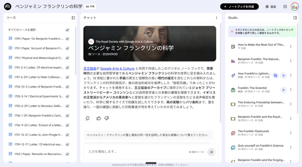 NotebookLMでベンジャミン・フランクリンの科学的発見を探る