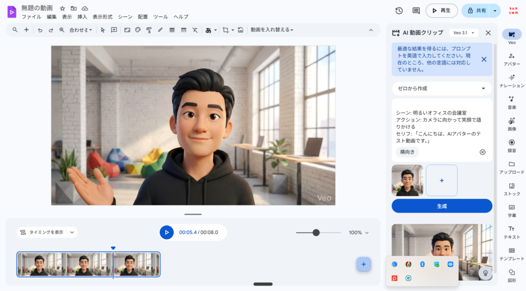 Google Vids で、私の環境でもアバターを使えるようになりました。