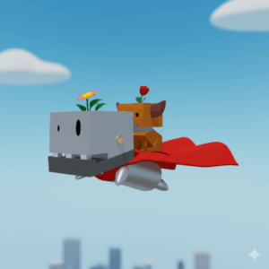 頭部: オレンジブラウンの四角いボックス型。口元に赤い花をくわえている