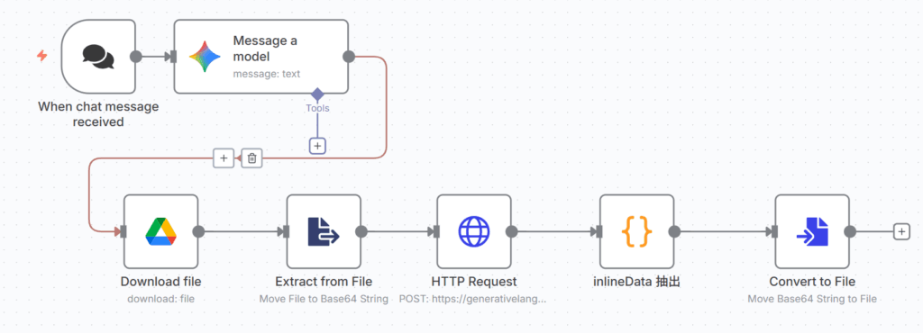 なので、届いたデータの形式を元に、inlineData だけを後続 node に渡します。