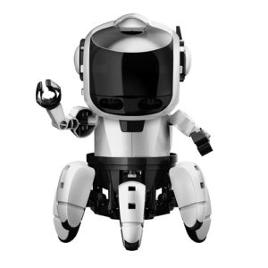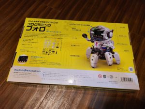 Micro bit を2つ用意し、両者で無線通信を行って、6足歩行ロボットのフォロを操作できるようです。