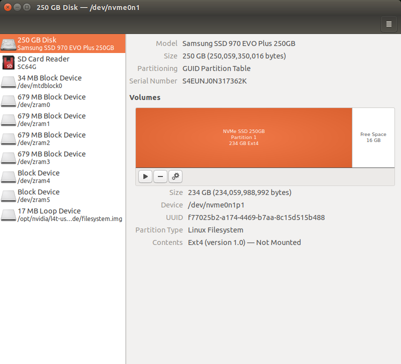/dev/nvme0n1p1 ext4 214G 34G 169G 17% /